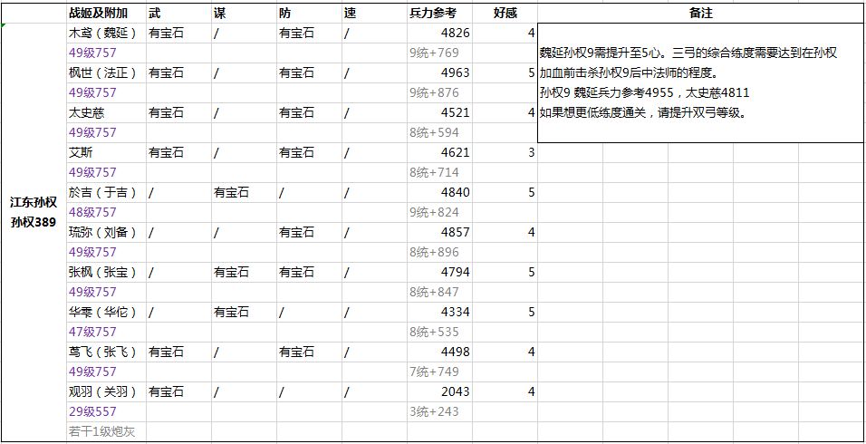 如果想追求比较低练度过,最好继续提升等级,49级想少人过对练度是有一定要求的,否则孙权9后中较难打死。