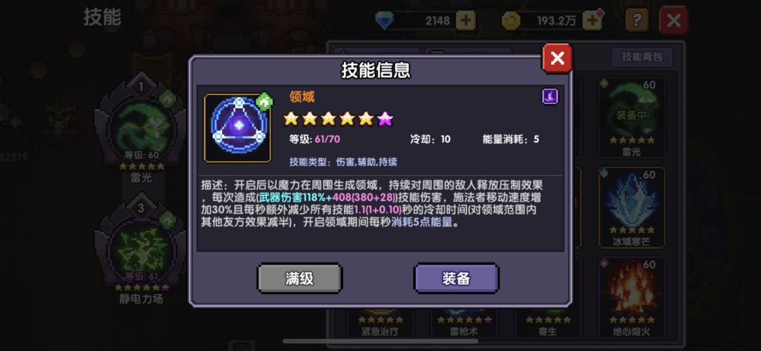 而团本版本之后,多出了一套名为魔女外装的功能,凑齐4个外装套装后可以强化技能 其中包括了法师的领域这个技能
