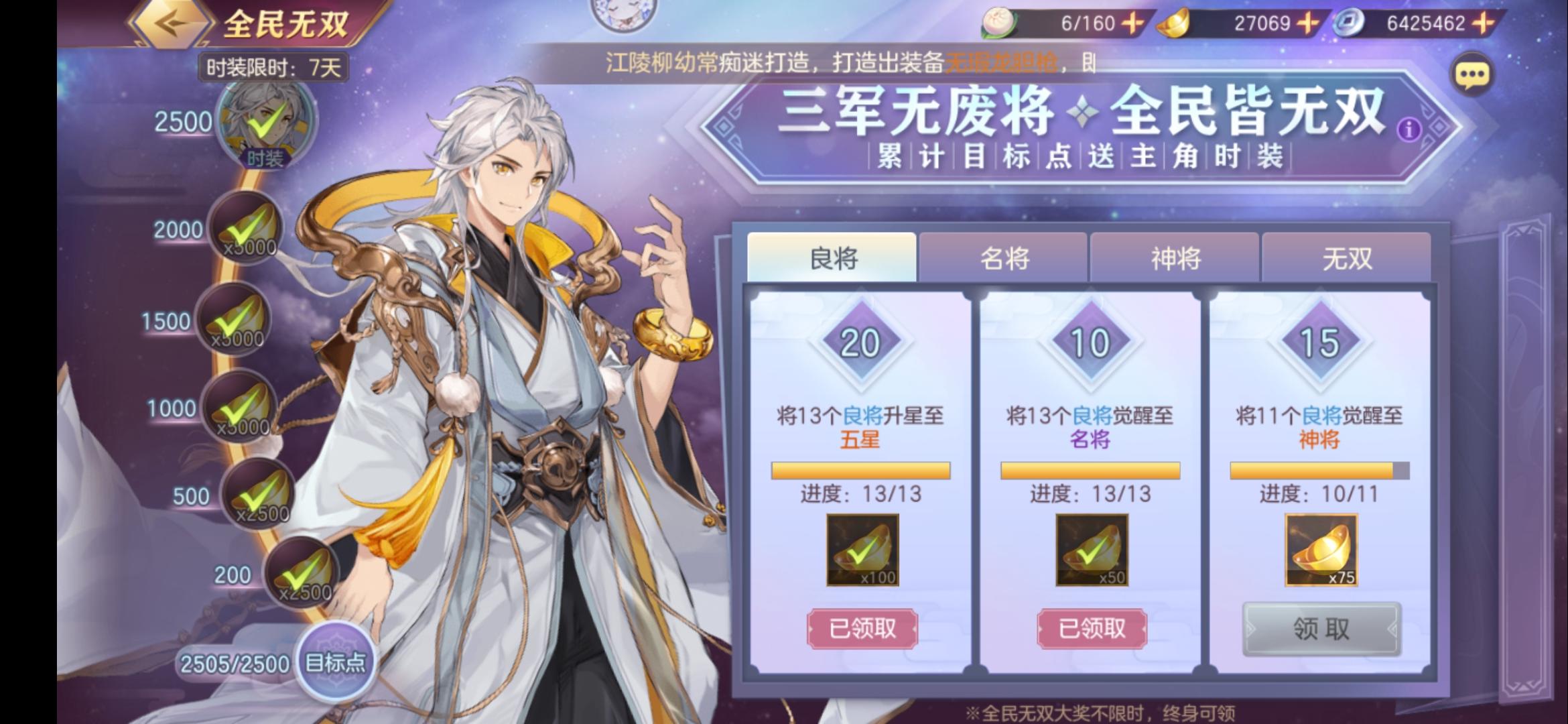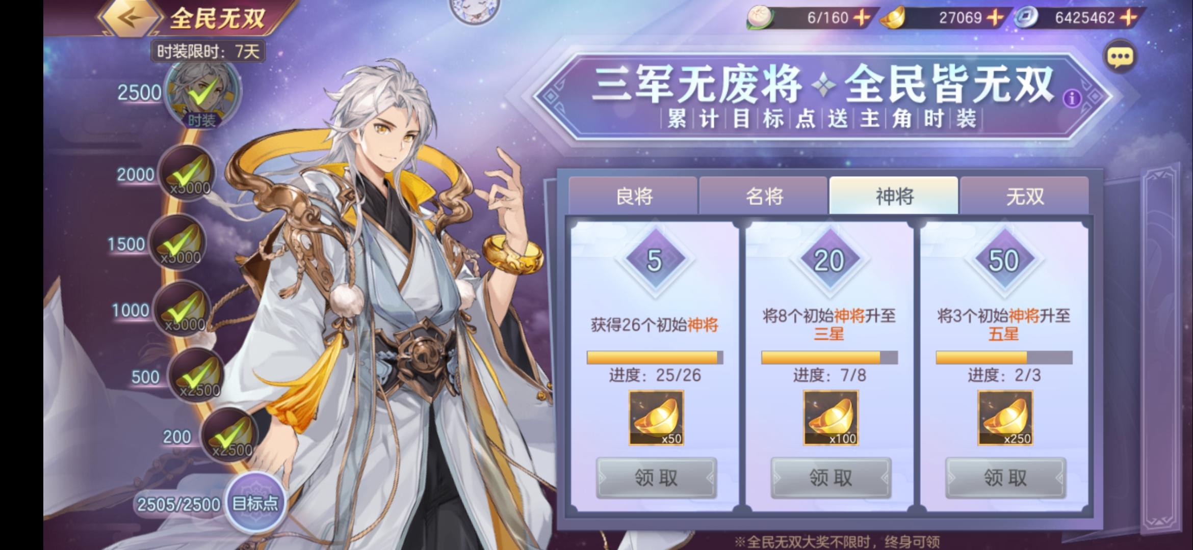 佛系平民,充了个首充,不想重生武将,所以等了两三天,不然20天应该就能拿到时装。