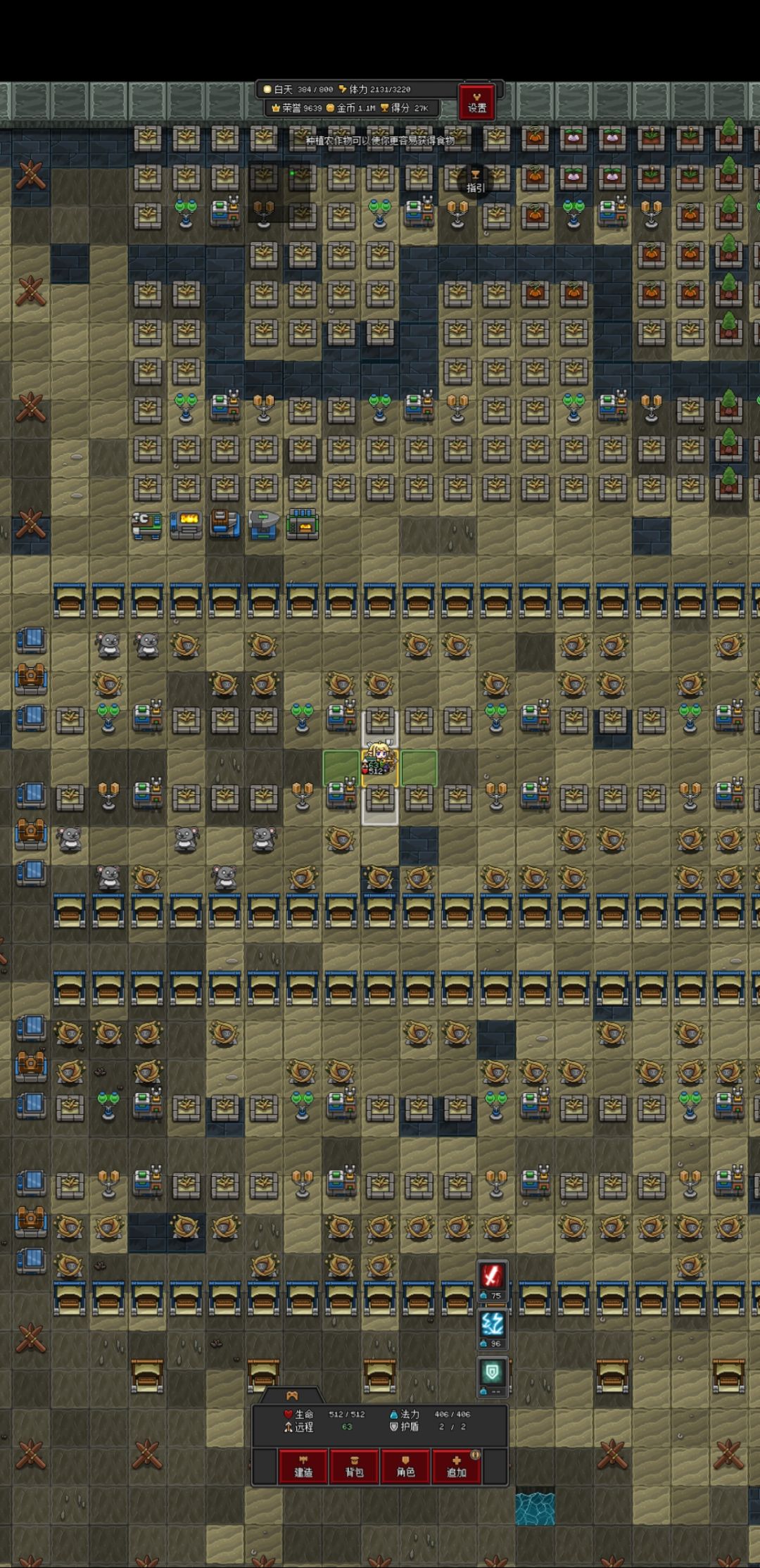 现在还没建完,主力还是燃油发电,两大块牧场,草没种够懒得再建造了,只能买草了,现在其实都有点不想喂了。很缺木头,种了五块树田