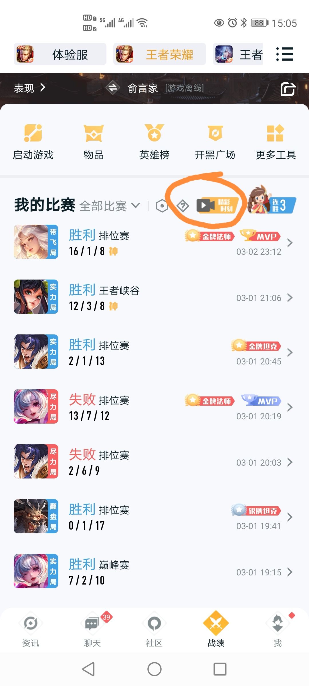 前段时间发现王者营地有个功能可以截取玩家当局视频,不会像王者游戏回放有个其他界面挡住,可以完整地呈现对局时的情况的那种: