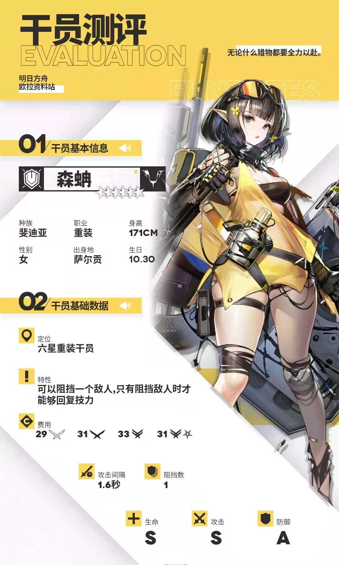 其实早在周年庆,方舟的各位画师太太们纷纷画起贺图的时候,森蚺就已经悄悄同我们见过一面了。彼时的她躲在画面的最里边,侧着的半张脸让人惊艳不已。现如今这位神秘的蛇尾小姐姐终于落地,她的自身强度究竟如何,又是否值得抽取和培养?希望通过这篇测评能让博士更加清楚地了解森蚺,为日后更好的使用打下基础。