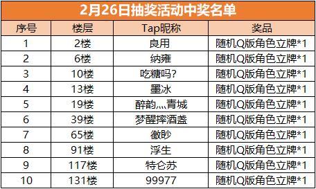 请以上中奖的幸运道友,于2021年3月16日前加入官方Q群1090152809,联系群管理-玲珑,并提供Tap昵称、Tap个人主页截图、邮寄信息,逾期未提交者视为放弃活动奖励。