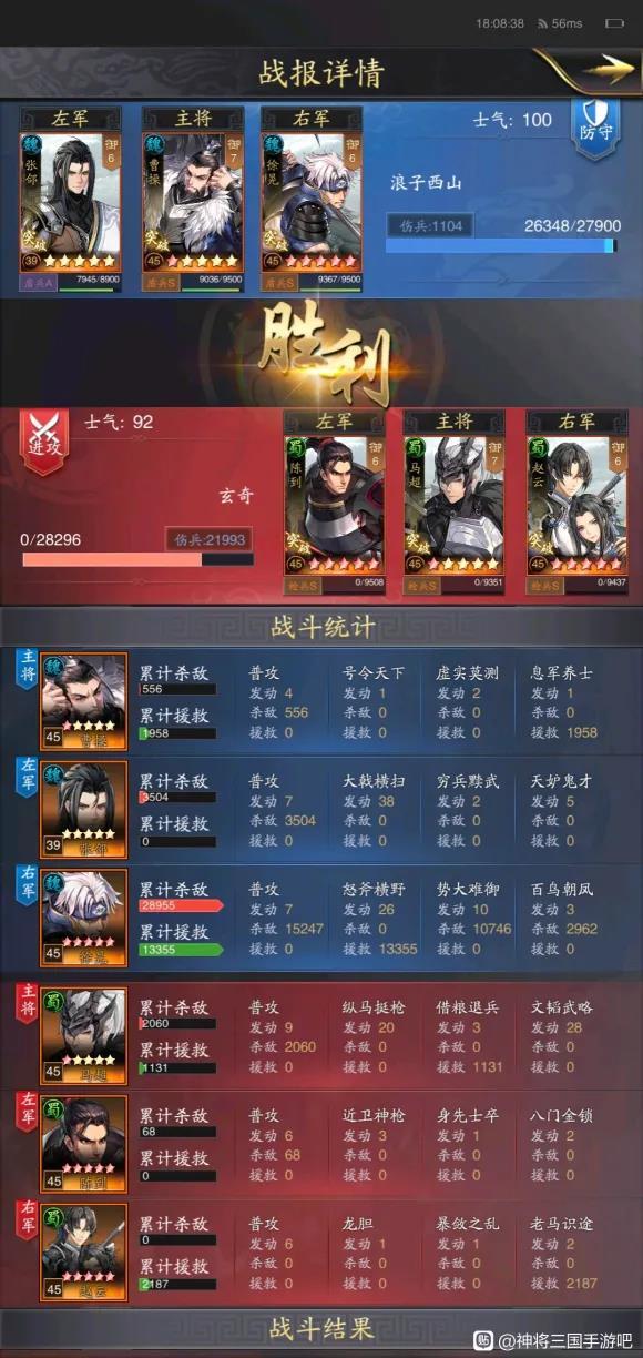 在来看看内战和打满红陆逊队,能发现张郃盾打除陆逊外稳稳的t0,蜀智天下枪被吊着锤,与高红嘟嘟队并列同水平,并且这几个将都是相对比较好得的,只能说张郃盾nb!