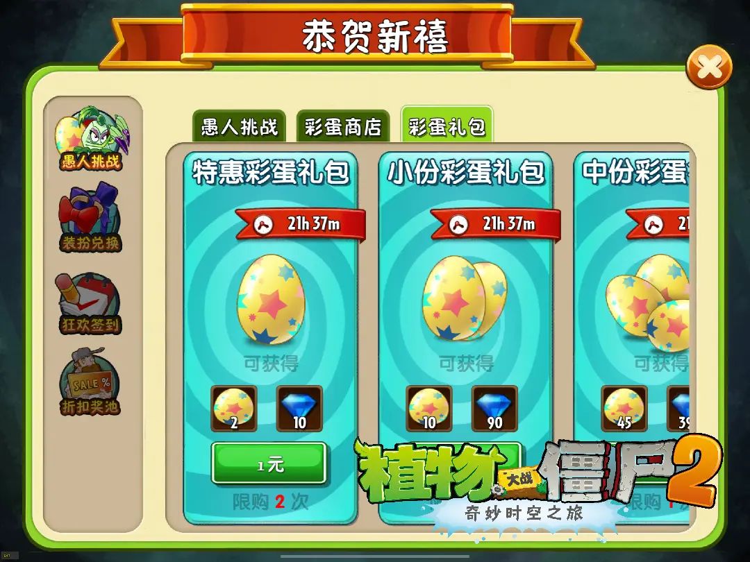 我们为大家开辟了额外彩蛋获取的通道,点击“彩蛋礼包”可以获取额外的彩蛋以兑换植物。