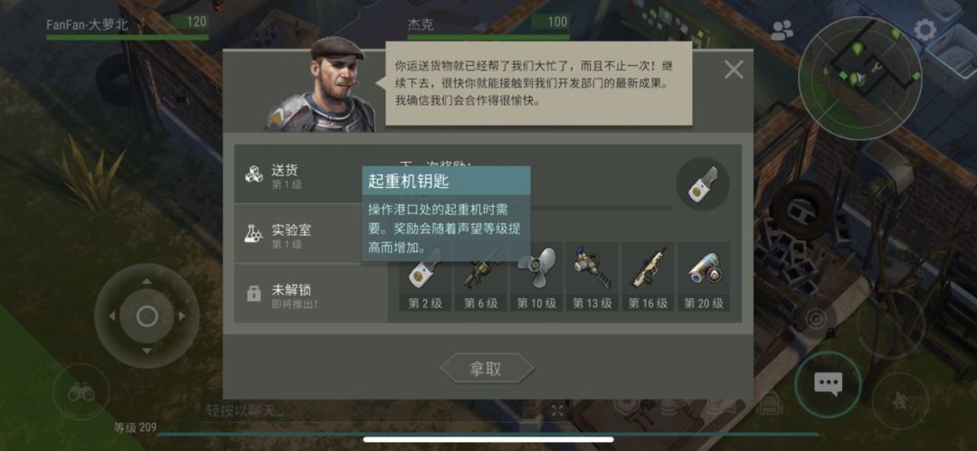 起重机及其钥匙,是个与磁盘体系类似的东西。通过送货来提升杰克的声望,每达到新的等级,会得到有对应的奖励。当没有特定等级奖励时,给的奖励均为起重机钥匙。