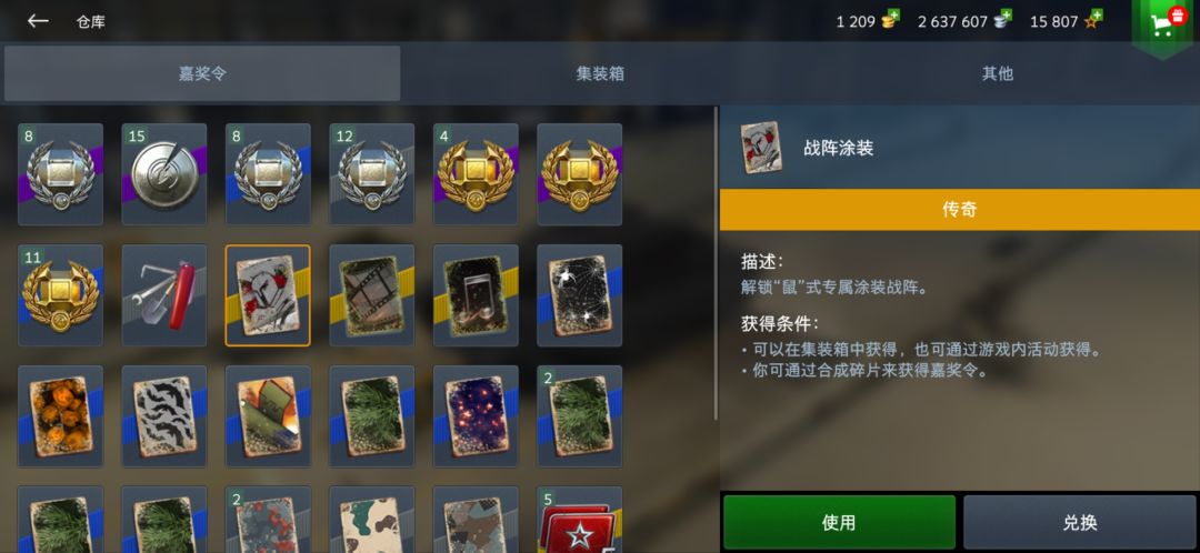 仓库:鼠式战阵皮肤、高级账号使用卡15天+、皮肤卡倍数经验卡若干、1200金币、1500全局260w银币