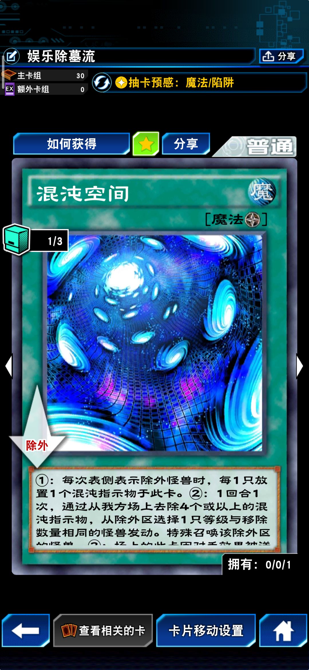 混沌空间:除外卡牌获得指示物,用于拉除外区的怪兽回场上,做场挂件