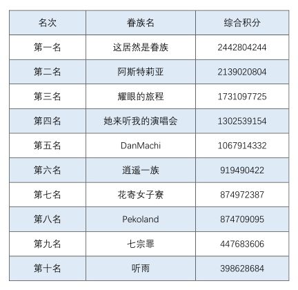 本次派阀斗剧活动的眷族排名已正式公布,各眷族的具体排名及分数请各位冒险者前往游戏内查看。