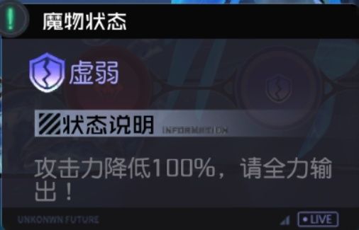 异界讨伐的buff机制分为两种状态,一种是虚弱状态,一种是强化状态,强化状态下提高的都是boss的攻击能力,虚弱状态则是分别降低攻击力或者防御力,所以在虚弱状态下我们能够打出的分数和输出会更高。