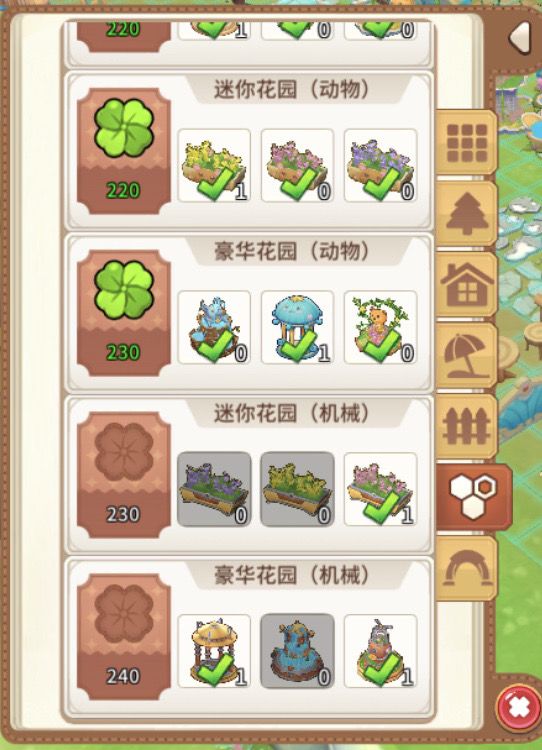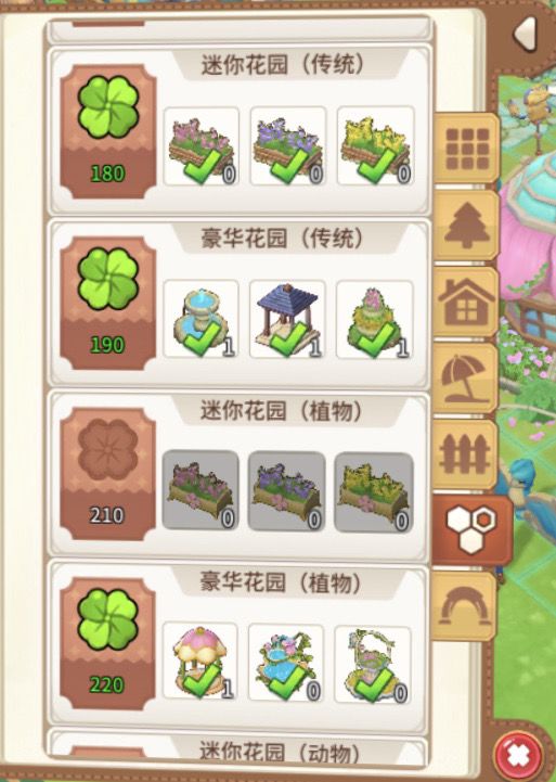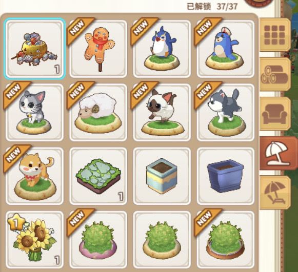 解锁手工作坊后可以进行自我制作增加环境值的装饰品。 有四个摆件是高等级解锁。共37个,其中捣蛋糖果罐已绝版。