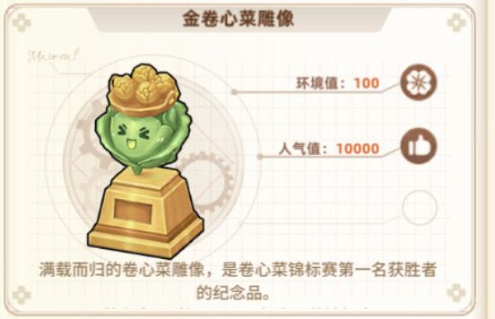 参加锦标赛,一般情况下获得前三名会有奖杯奖励。锦标赛大概一月一次, 金奖杯100环境值,银奖杯50环境值,铜奖杯25环境值。