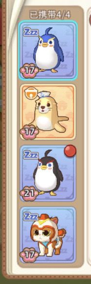 其中陆地宠物,比如猫、狗、小鸡、鸭子为拾取海滩物品;适水宠物,比如企鹅和海豹为拾取水中海产物品。