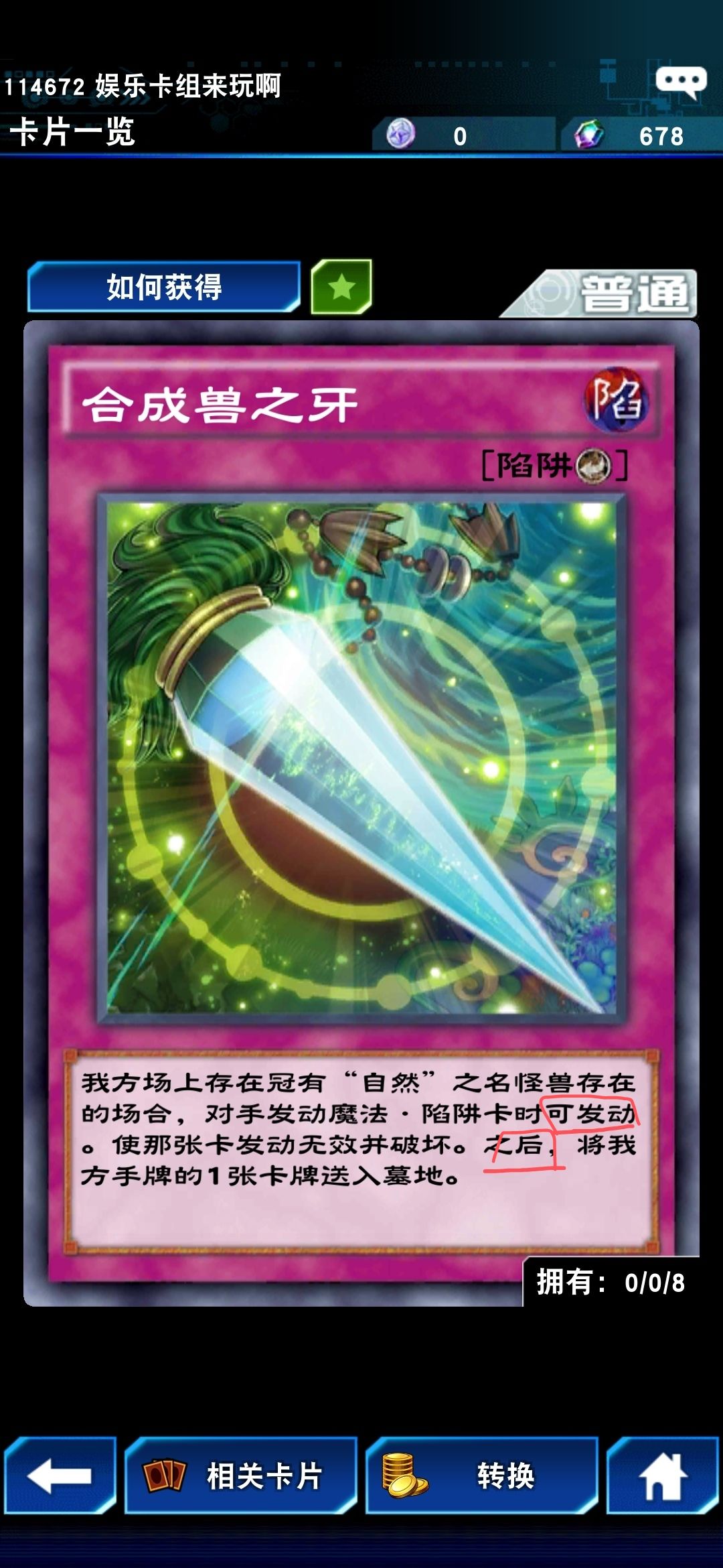 而我还是太天真了,在这里只要“发动”后面还有下文,除非写了“可”,否则后面的条件也须满足,比如这张反击陷阱就需要你场上站着“自然”怪,同时手里还有牌才能发动,瞬间实用性大大降低。