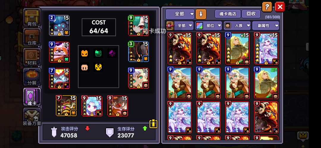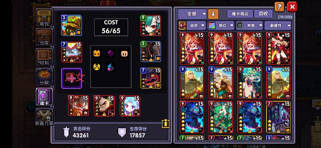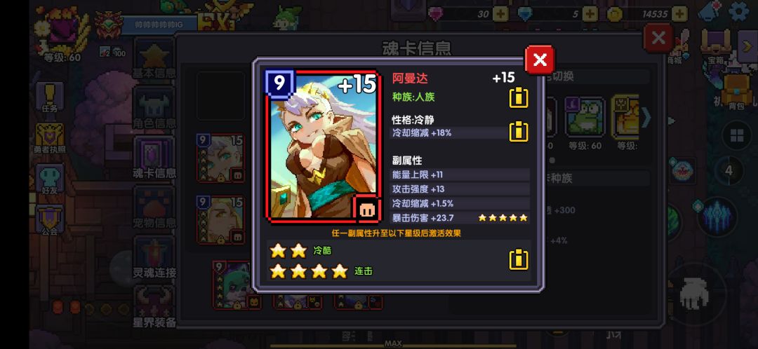 多谢沸点大佬和名字大佬的提醒,宠物的15攻速导致战士的攻速显示虚的,我确实没考虑到,所以魂卡需要的攻速是25,所以就改成20+吧就。
