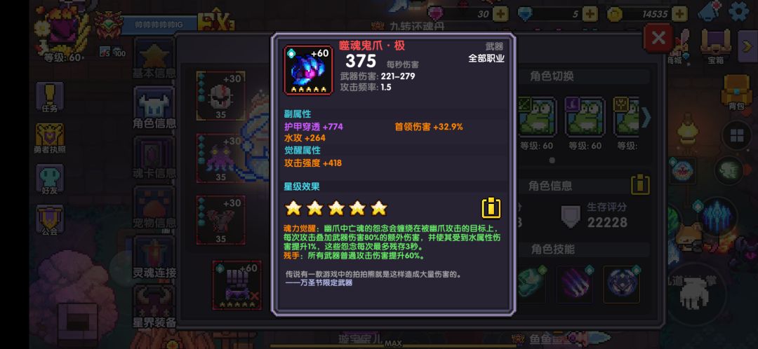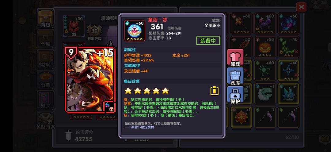 无影剑这把武器拥有着极高的爆伤,这个版本穿透也并不是很缺。属性选择,首领,水攻,爆伤 ,觉醒攻强