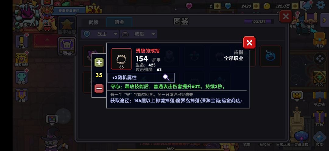 符文中缺少的普攻伤害,残破戒指完美提供。属性水攻、暴击值、穿透