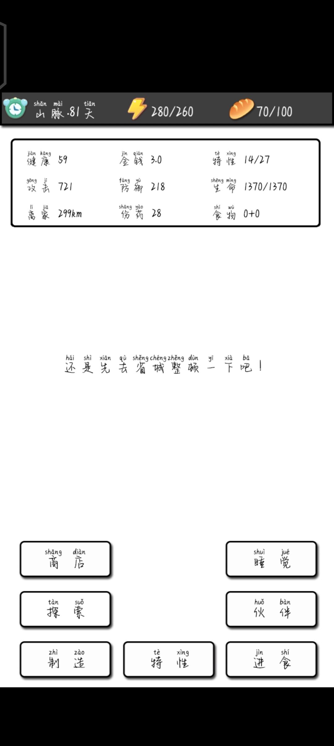 完了 卡死了 怎么办...点探索就叫我去省城,睡一觉也一样。。。