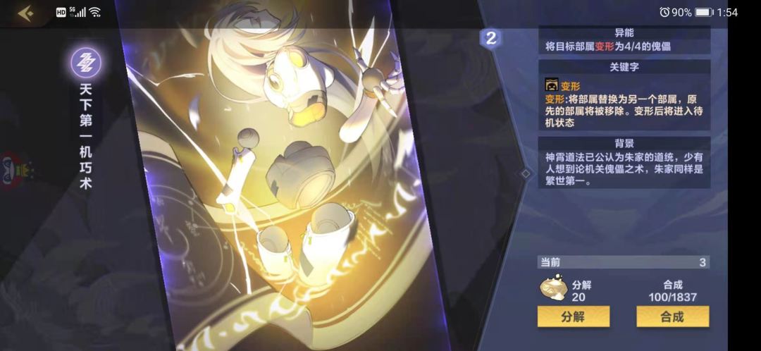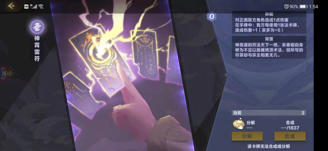 本家3费法术,获得3张法术牌,雷法资源的一个重要来源点,给的法术是全系都有的,因此非常快乐,很可能给到很多强力法术让你能够打出跨系的不可能combo,卡牌游戏的随机性一直是一大乐趣,上限极高,下限也不低,唯一缺点就是对快攻如果1费2费没能站住,3费空下这个卡亏节奏,注意,场上面有丹青之灵的时候发动这个法术给的3张牌也是能吃到减费的效果的