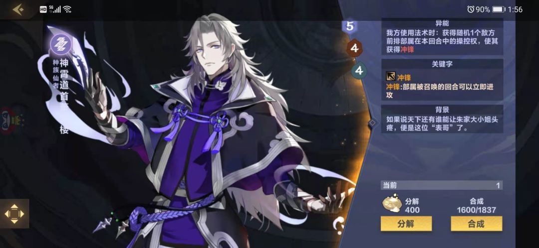 本家橙卡,544身材,使用法术时获得随机敌方前排部署的控制权且给予冲锋,很美好,但实用性也不是很高,首先费用和宗主冲突,同样是5费,下这个还是宗主,大概率是下宗主的,其次544还要配合法术才能打出combo,而且本回合内控制,还得是前排,限制太多了,属于可有可无的一张卡,并不能带来特别高的受益,可以根据需要选择入不入,入的话也大概率是用来做一些特化的软解使用,比方说对方的龙姬之类有法术免疫的随从