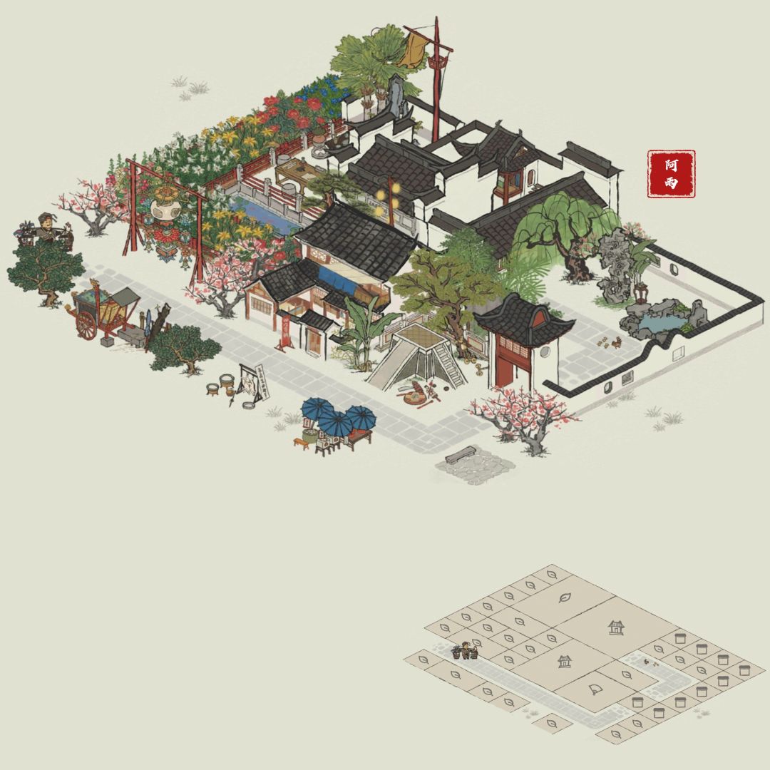 🌸春夏秋冬客栈来啦(按图顺序4张)!再来两个有院子的客栈,还发现客栈跟同乡会馆组合也很庞大呢!最近很爱磕应天的布局,桃花真的超好看~
