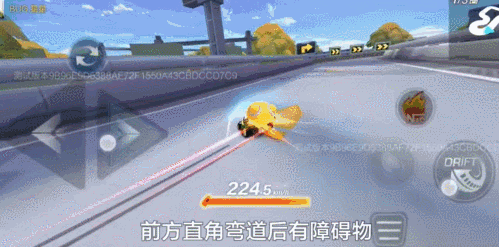起步后第二个直角弯后有障碍物,在这个直角弯处,车友们可以先使用拖漂的操作技巧,出弯后快速摆正车头,对准两侧障碍物中间的赛道方向,并释放氮气快速通过。
