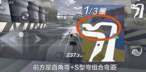 第二个直角弯可以先使用拖漂的技巧,触发拖漂延续,并衔接断漂补气等操作快速通过U型弯道。