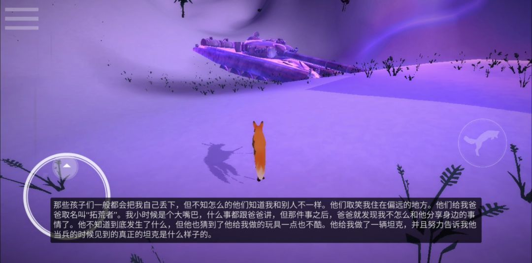 游戏中你将扮演一只狐狸在雪地中不断的奔波,试图找寻自己失散的家人。