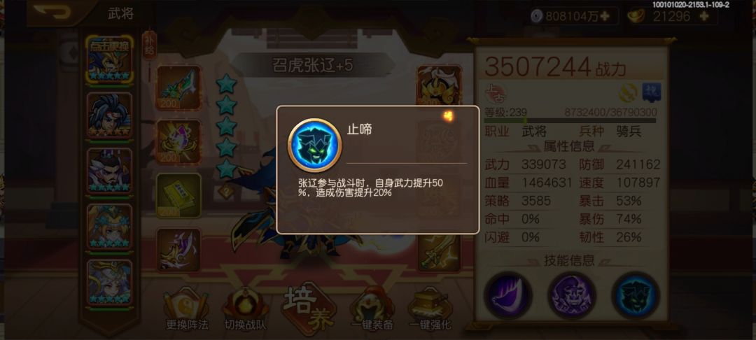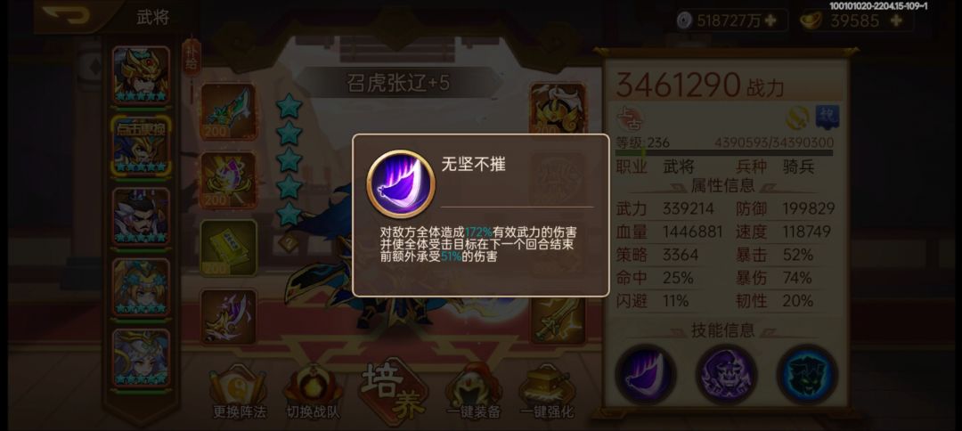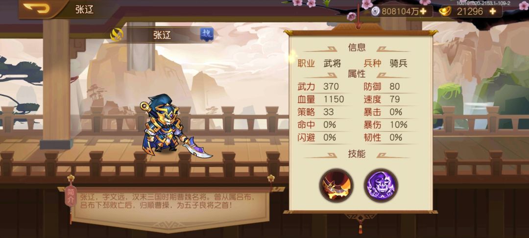 张辽满专属大招技能172%武力伤害系数