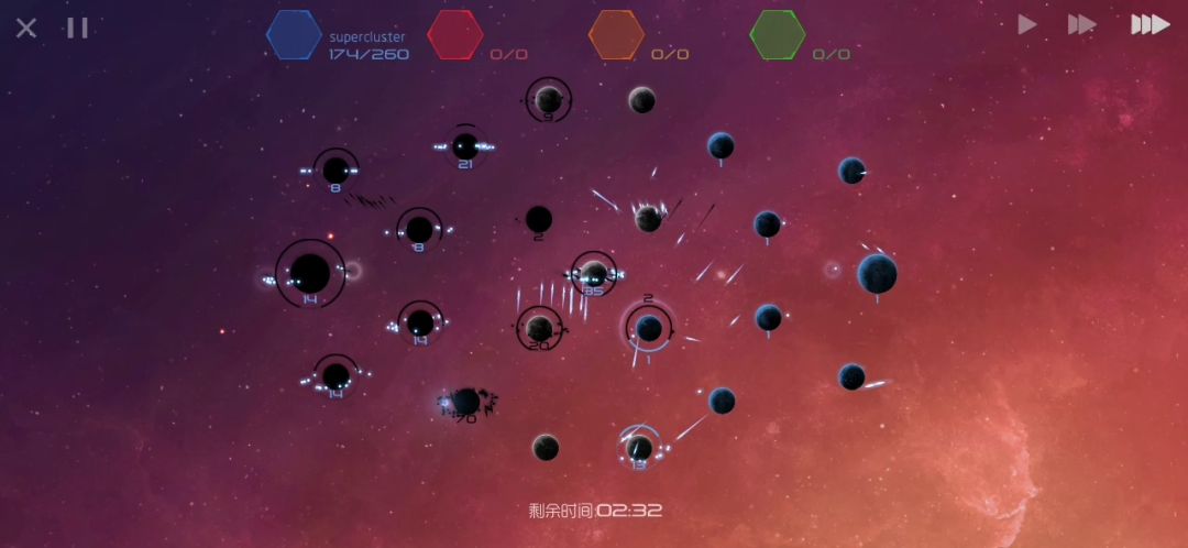 此外,各位还有玩家自制版可供选择。自制版可供自制的内容非常多,包括关卡天体分布、天体特性、势力属性、AI特性等。下面是一个自制版的游戏视频▼