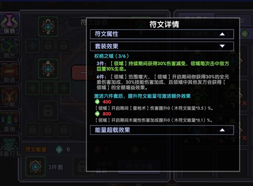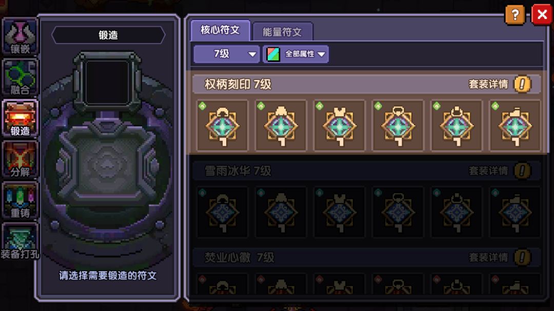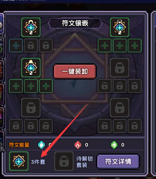 然后装备上带核心孔洞的装备,再嵌入核心符文,入下图,装备上三件之后会显示激活雷法三件套效果