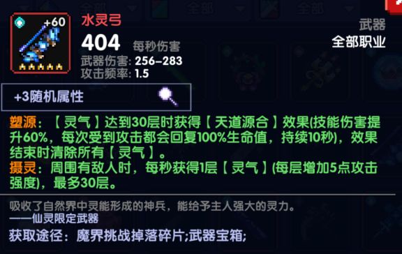 水灵弓,BUFF期间高额的技伤加成和无敌的100%的回复量,后期的毕业武器之一