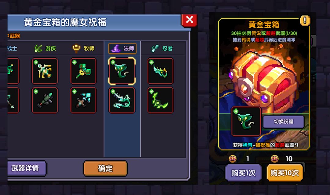 魔女祝福选择武器后开箱,前期概率感人,推荐把能换黄金武器币的地方都换了