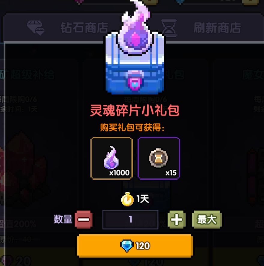 120钻石的1000魂跟15刷新币,赌卡跟刷新商店都非常实用