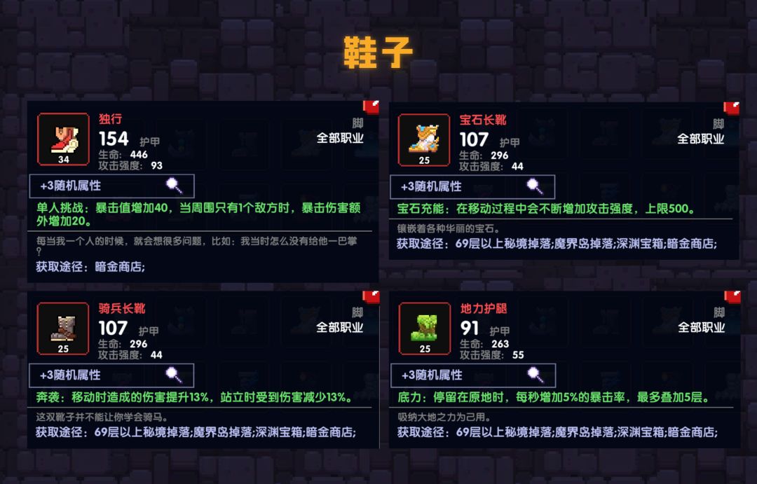 宝石长靴:跑路鞋,需要一直走动,前期加成很高