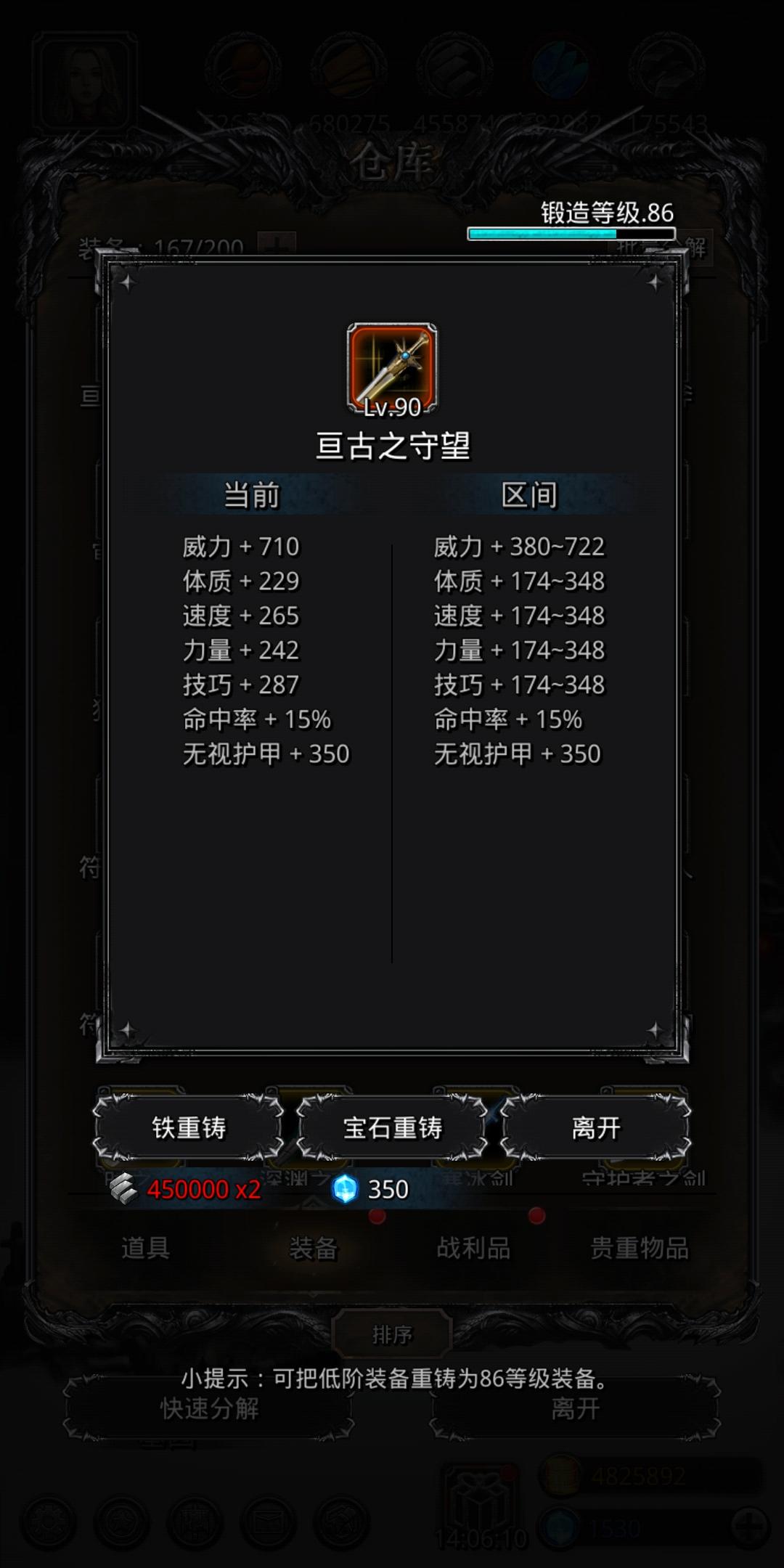 我86段。配装,带影兽盾是因为它和黄沙盾护甲差不多,但是有50%的特效就很棒,巫医秒回刚好2000,祭司奶3200,到25分钟本体有3000血,左手17000血,右手就奶了左手,本体就挂了。我这配装挺稳的,原来我配圣龙687的甲,然后把护甲战利品换给了祭司,圣龙的甲就变642了,但是完全扛得住,主要还是影兽盾特效舒服吧。昨天到25分钟左手先死,就手贱巫医偷毒,然后暴毙