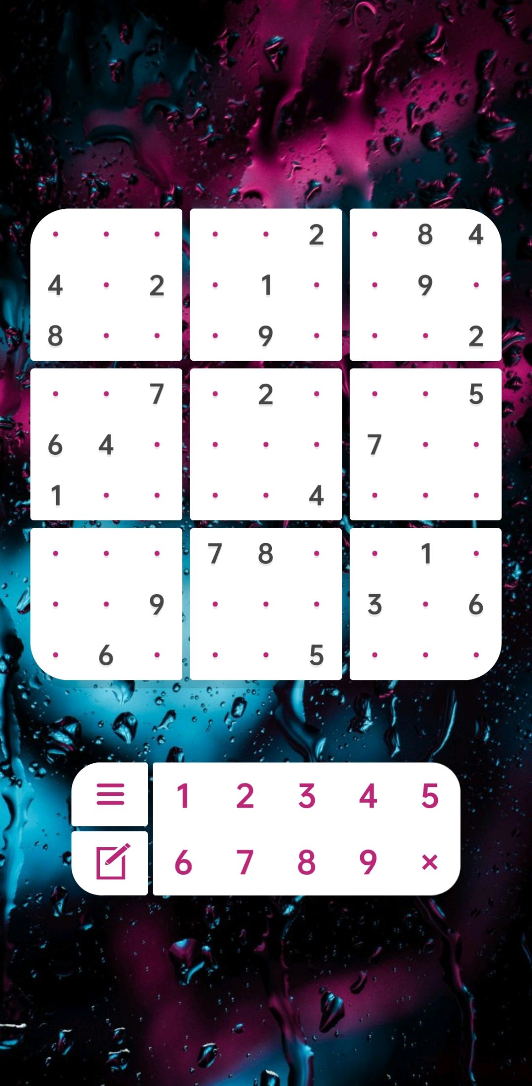 玩法介绍,在9个9*9的格子里填满1-9这九个数字,且横竖皆有1-9这九个数字。