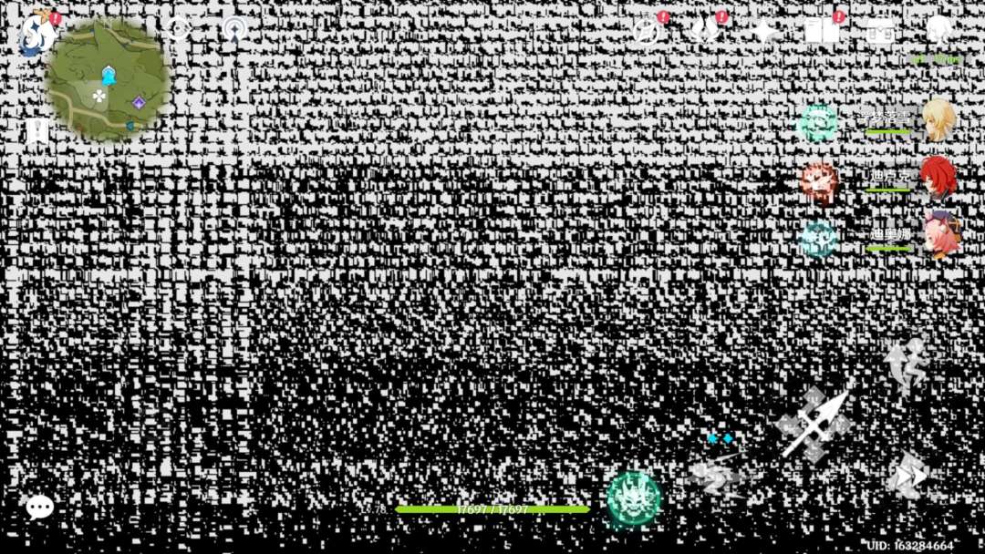 下载了这个游戏之后,兴致勃勃地打开,下载资源需要的空间比较多我能接受,然后加载完了之后进入游戏出现了这种花屏的情况,我一开始以为手机问题,重启了游戏,又重启了手机,还是这种情况。后来我又检查了客户端资源包,上面都是完好的显示没有问题。其他功能都能用,都是正常的,只有显示视角的这一块是这样的,传送过了也还是这样。