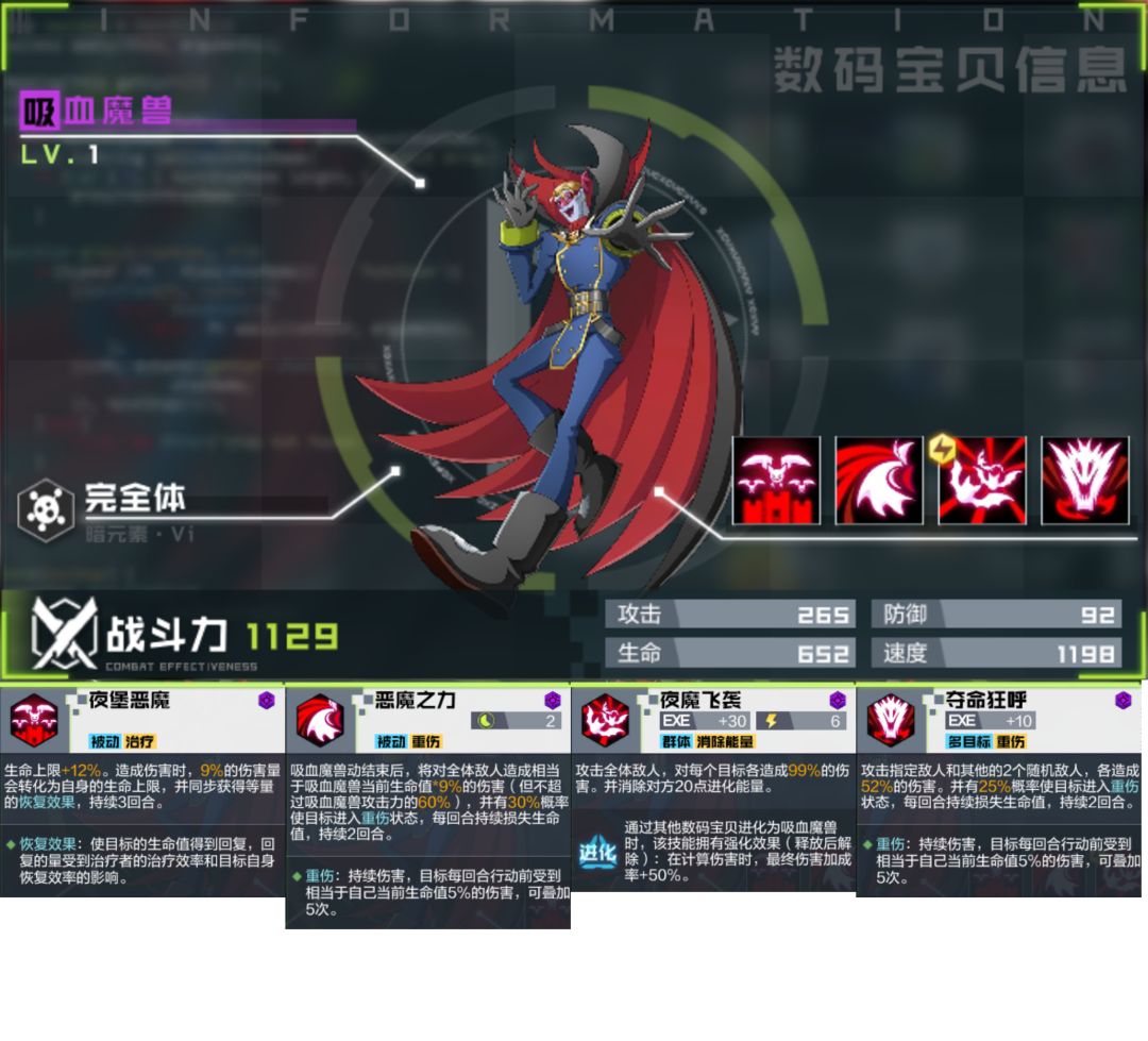 总结:以上四只完全体都随便选,游戏内暂时没有适合的阵容开发,都会沦为进化究极体需要的狗粮材料之一