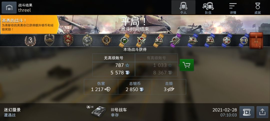 以前打的,偶然翻到截图了。本来想拿三号打打精英经验加成员熟练度,结果进了四级房,全场一共就两辆三级车,我打成这样都不赢