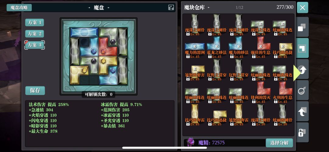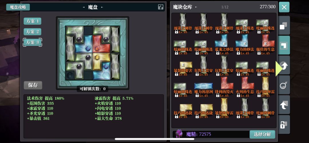 虚空行者手套是一件神器,闪现增伤,最多叠加10层,10层叠加好后,闪现CD恢复一个用一个,这样可以一直保持10层增伤,300%伤害,是对输出很好的保证。实战中,无需释放技能,所有的蓝量用来保证buff不断档,全给到闪现技能使用。注:闪现不会断刺客大师。跑鞋的作用就是因为蓝消耗过大,只够保持闪现不断,所以跑步下陨石成了此套BD的必须品,面板必须堆百爆,否则唤炎腰带增伤形同虚设。我体验的职业种类特别多,所以魔盘中有一个技巧的迅捷,导致面板没有百爆,这个黄色方块换暴击的即可,此套BD相对于正统火法来说有一个硬性数值,就是穿透不可以过低,因为没有陨星套4件效果的陨石坑来减少抗性,故魔盘中黑色都用穿透属性的最优。穿透若能达标,此BD优于正统火法。