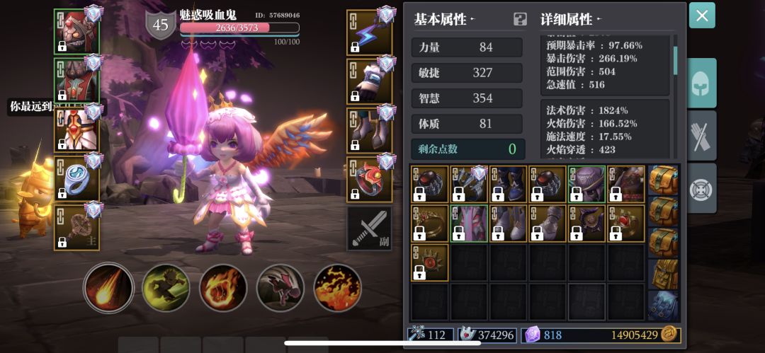装备为陨星头、衣服、唤炎腰带、虚空行者手套、弗洛洛的夸耀鞋、花姐、暴击指环、赫斯提亚项链、天火灭却法杖。打造及来源看图鉴。