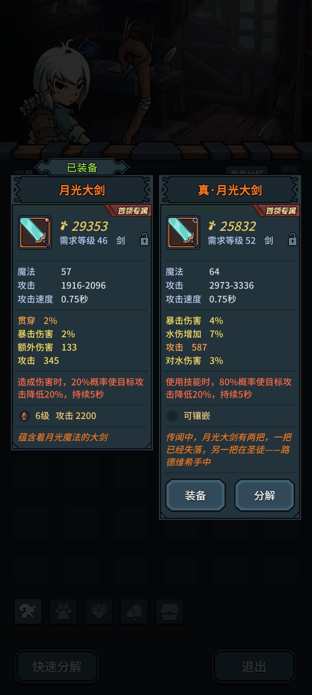 我记得之前看攻略说降低攻击有上限,50%封顶,而且我看有很多攻略都说要真月光大剑。那带露露的情况下还用不用月光大剑或者真月光大剑?真月光大剑比月光大剑好用吗?回复冷却时间有点长感觉不好触发真月光的特效,带其他技能又没有回复刷不过小怪,有没有大佬教教我怎么取舍