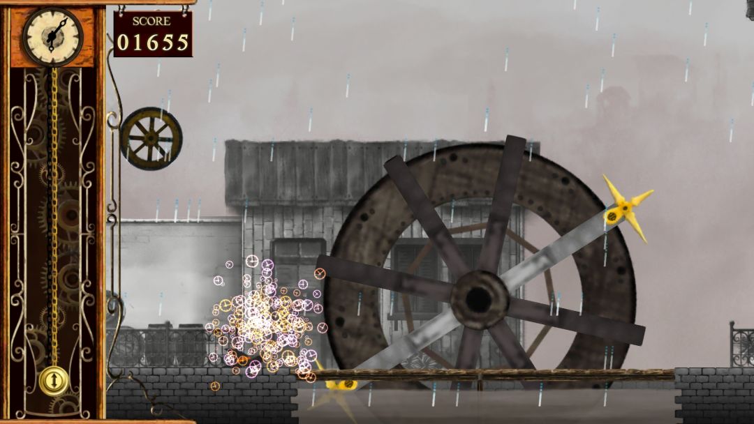 这个陷阱其实是个水车,它会来回旋转,并且在水车的一端上有的地方会绑上金色的宝剑,有的宝剑是单独一个,有的宝剑是两个放在一起比较难躲,因为还有一定的角度。