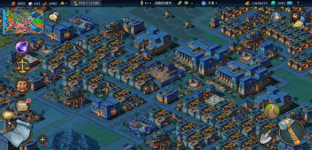 首先分享一下我其中一个埃及号的夜景,这个号是按旧图纸建的,房区占了一大片区域,而且也没有拆除辅助建筑,整个房区的夜晚灯火辉煌,蛮好看的。
