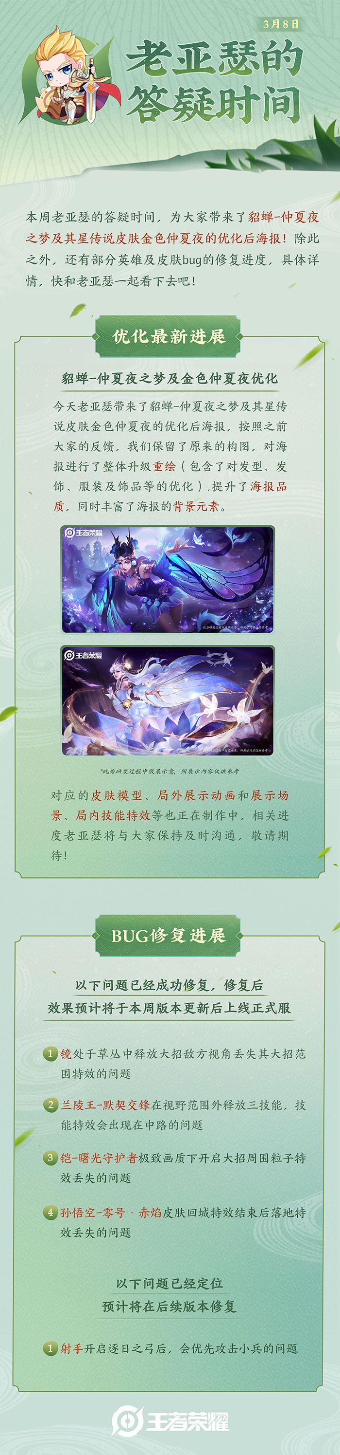 老亚瑟的答疑时间|貂蝉-仲夏夜之梦及金色仲夏夜优化后海报展示