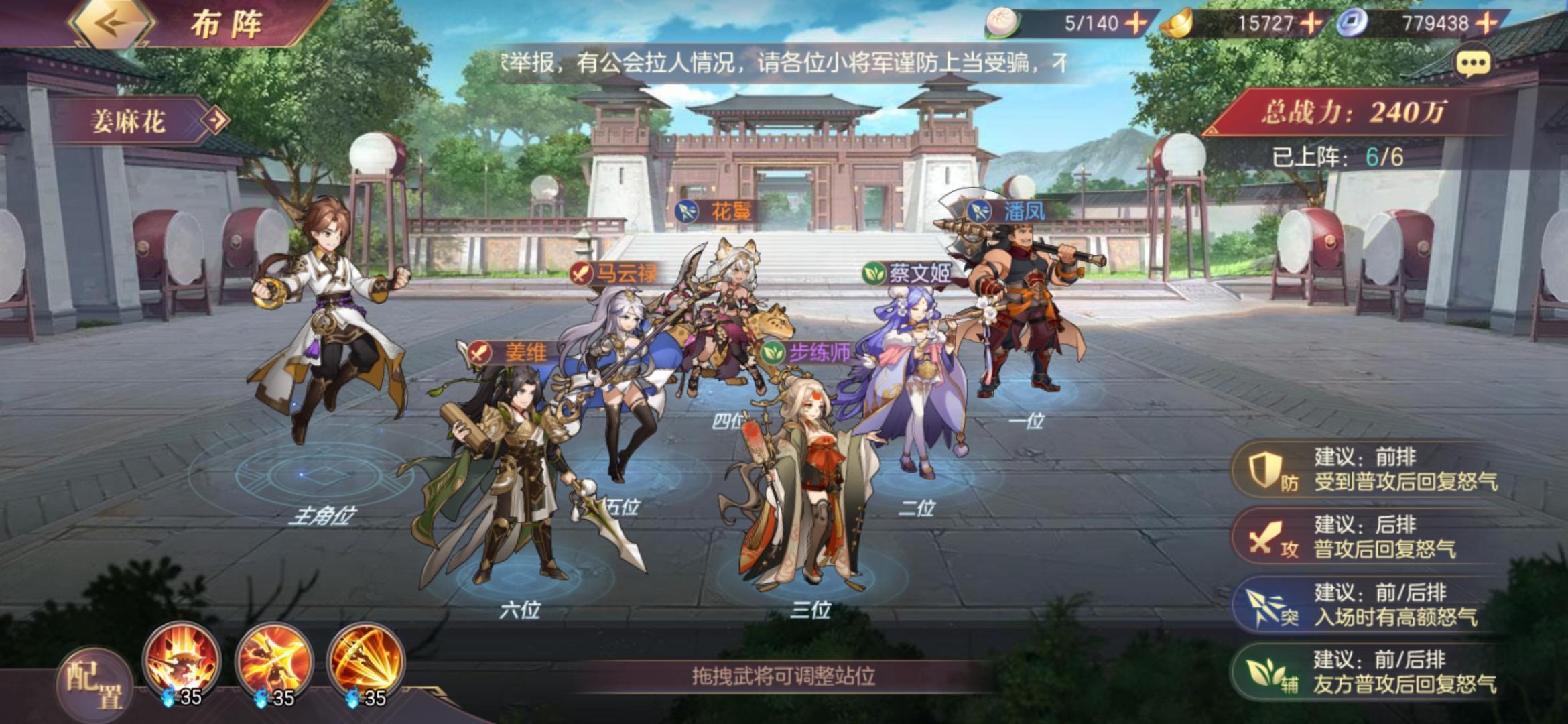(姜维五星 马云禄三星 花鬘三星 步练师4星 蔡文姬两火 )
