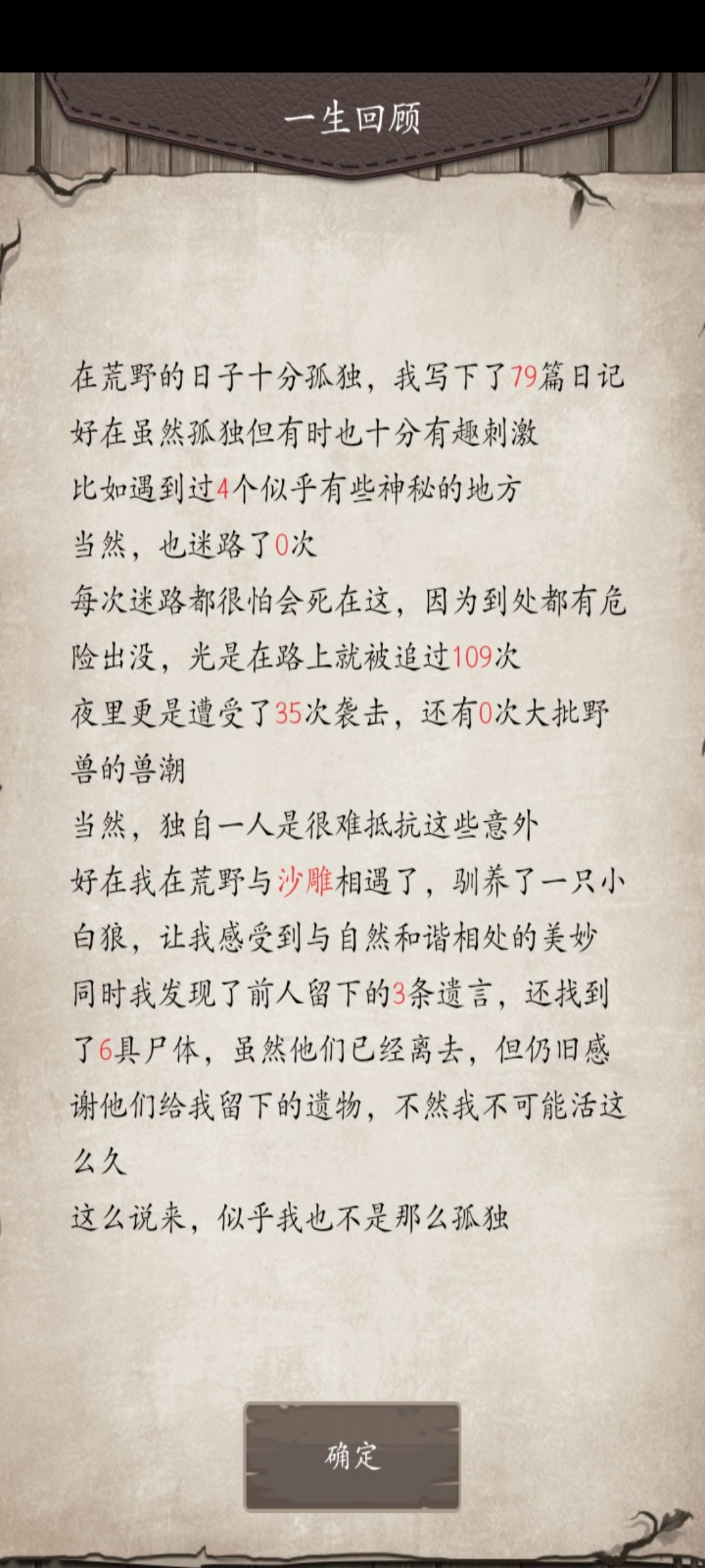 不知道是不是我不太会玩,耐久武器一点都没有,双刃利斧我都做了30多把,做了三次藤甲,去一次野蛮人哪里回到营地就被上门索要,简易去破风口拿到破棉衣,然后运转一下打通丘陵后探索沉船第一层,接着林中暗流通关,连续三天满足那个白狼跟野蛮人的好感,珍珠不够就钓鱼,运气好一会就满60珍珠了,然后把远山打通关,问老妇人帮助,然后野蛮人送来的索棱,去荒野遗迹找一些物品,冬天来了前一定要肝,最好先把木头储存好,松木林跟右下角那个刷满,基本上一个冬天要300木材,刷到的兽血记得做兽血乱炖这样冬天木材不够了可以吃一个尝试出去作死,简简单单轻轻松松,坚实木材够了基本上就可以起飞了