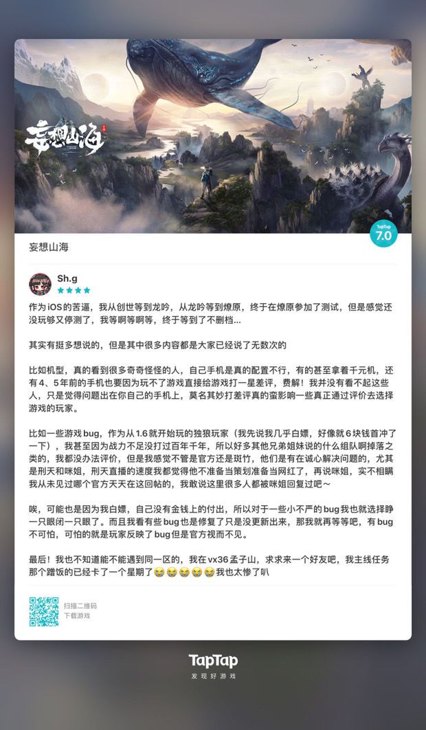 亲爱的旅者大家好呀,这里是咪姐。大家应该还记得我们不删档首周的晒评论福利活动吧~咪姐来给大家开奖啦!自活动发布以来我们收到了旅者们成百上千条的评价,每一条评价咪姐都有和小伙伴们一起认真阅读,其中有很多优质的评价和攻略,当然也有一些其他内容,总之从评论中咪姐都能看出大家对山海的用心和投入,在这里咪姐也非常感谢大家对山海世界的支持与厚爱,我们一定会不负众望更加努力的~