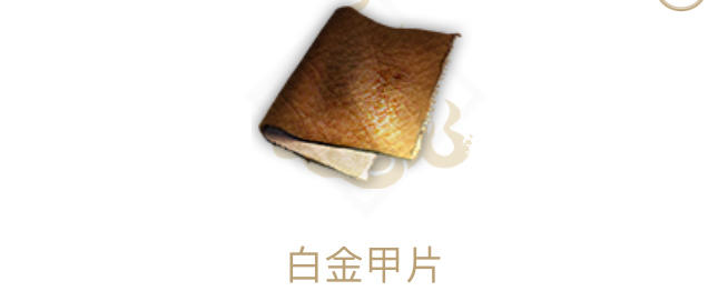 白金甲片是制作紫色、橙色装备的重要材料之一,如制作巡空衣服,就需要白金甲片*2,琼玉液*5,卓越皮料*1。
